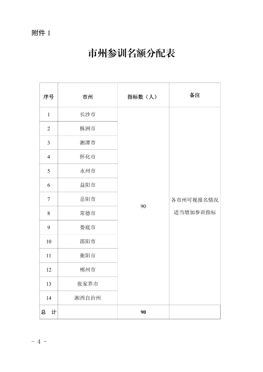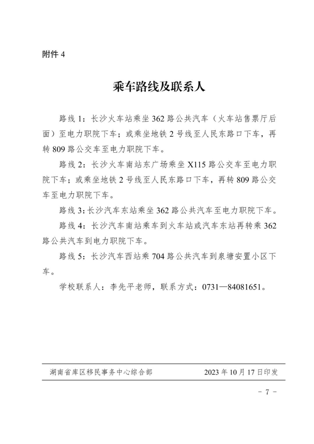 各市州水库移民机构: 根据年度移民培训工作计划,我中心委托湖南水利水电职业技术学院举办 2023 年第二期水库移民乡村振兴建设致富带头人培训班。现就有关事项通知如下: 一、报到时间及地点 报到时间:2023年11月5日。 报到地点:湖南水利水电职业技术学院培训楼 125 室(长沙县东四路20号) 二、培训对象及名额 培训对象为全省重点移民村村集体经济组织骨干、移民创业致富能手、移民经济合作组织骨干、移民种养业大户、返乡创业移民等。计划培训 90人。 三、培训时间、内容及方式 本期培训时间8天。培训内容主要包括乡村振兴政策解读农村创业实操、生态农业与乡村旅游的发展、新形势下农村经营主体获得资金支持的渠道和方法等(课程安排见附件2)。培训采取集中授课、实地研学、经验交流相结合的方式进行。 四、培训费用 学员学习期间培训费、食宿费、保险费等由省库区移民事务中心统一安排,学员参训往返交通费自理。 五、有关要求 1.各市州、县市区水库移民机构要做好培训工作的宣传发动及相关保障,有序组织好相关人员参加培训。请各市州水库移民机构于2023年10月26日前将汇总后的参训人员名单(见附件3)报省库区移民事务中心后期扶持部(联系人:周继征:报名咨询电话:0731-85495194,报名咨询时间:工作日上午8:00-12:00,下午14:30-17:30:电子邮箱: hnympx2008@163.com) 2.省库区移民事务中心将视报名情况对市州培训名额进行相应调整,并将生源输送任务完成情况作为绩效评价的重要依据。3请参训学员于2023年11月5日17:00前到培训地点报到。报到时需携带当地水库移民机构开具的介绍信、本人身份证原件和一寸免冠相片4张。 附件:1.市州参训名额分配表 2.水库移民乡村振兴建设致富带头人培训班课程安排表 3.水库移民乡村振兴建设致富带头人培训班报名表 4.乘车路线及联系人