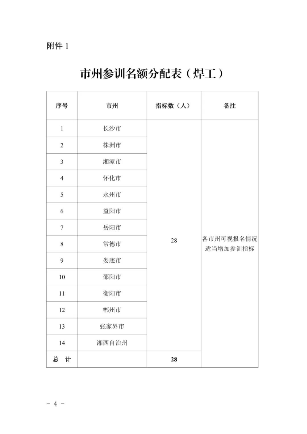 根据移民培训工作年度计划,我中心委托益阳职业技术学院举办 2023 年第二期水库移民焊工培训班。现就有关事项通知如: 一、报到时间及地点 报到时间:2023年10月15日 报到地点: 益阳职业技术学院(益阳市迎风桥镇新塘村) 二、培训对象及名额分配 培训对象为 18至48 周岁 (女学员40 周岁以下),有初中及以上毕业证书或学校毕业证明 (报考必备),身体健康且有明确就业创业意愿的大中型水库农村移民。本期计划培训 28 人。 三、培训内容、时间及方式 焊工基础理论知识,焊接基本生产作业包括手工电弧焊CO2气保焊、气焊气割、焊接工艺编制、焊接生产质量检验等知识和技能。本期培训采用项目式教学方法,由专业理论教师和实训教师授课。培训时间 30 天,共170 课时,其中理论培训 100课时,实训 64 课时,理论考试 2 课时,实操考试 4 课时。培训结束,将组织学员进行焊工技能考核,考核合格者可获得省应急管理厅签发的焊工特种作业操作证。 四、就业方式 学员结业后可由学校推荐到相关行业企业就业,也可自主择业。主要就业方向有工程装备制造、船舶制造、机械设备制造轨道交通装备、电力、有色等行业,主要岗位有焊接质量检验、焊接装备操作、焊接设备和机械维修、焊接和特殊焊接、工艺评定操作等。 五、培训费用 学员学习期间培训费、学杂费、住宿费、考证费、床上用品费、保险费、考试交通费、耗材费等由省库区移民事务中心统-安排,学员生活费及参训往返交通费自理 (学员按实际参训出勤率可享受每人每天 30 元生活补助)。 六、有关要求 1.各市州、县市区水库移民机构要做好宣传发动及相关保障工作,严格审核移民身份和健康状况,有序组织好有相应就业创业愿望的移民参加培训。请各市州水库移民机构于 2023 年 10月210日前将汇总后的参训人员名单(见附件 2) 报省库区移民事务中心后期扶持部(联系人:周继征: 报名咨询电话: 0731-85495194:报名咨询时间:工作日上午8:00-12:00,下午14:30-17:30:电子邮箱:hnympx2008@163.com)。 2.省库区移民事务中心将视报名情况对市州培训名额进行相应调整,并将生源输送任务完成情况作为绩效评价的重要依据。 3.学员报到时需提供初中及以上毕业证书或学校毕业证明并携带经当地水库移民机构盖章的《学员登记表》(见附件 3)、本人身份证。 附件: 1.市州参训名额分配表 (焊工) 2.市州移民技能培训报名表 3.库区移民转移就业技能培训学员登记表 4.学校地址、到校路线及联系人