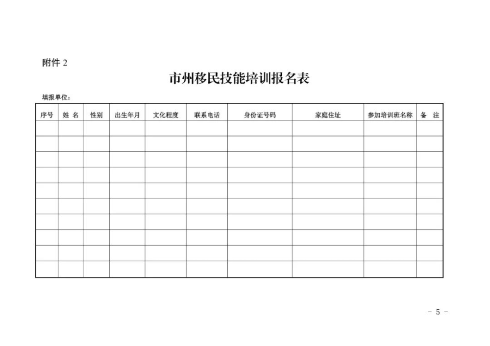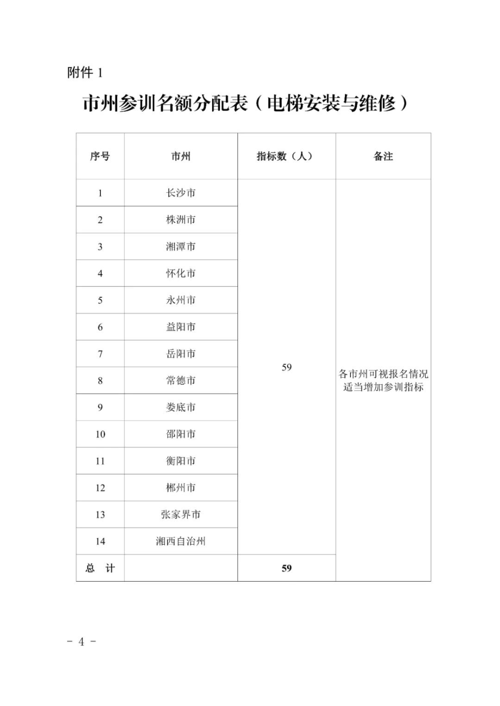 各市州水库移民机构: 根据年度移民培训工作计划,我中心委托湖南湘江工贸技工学校举办 2023 年第二期水库移民电梯安装与维修技能培训班现就有关事项通知如下: 一、报到时间及地点 报到时间:2023年10月12日 报到地点:湖南湘江工贸技工学校电梯培训基地(长沙市岳麓区学士街道联东 U谷 31B 栋)。 二、培训对象及名额分配 培训对象为 18 至45 周岁,身体健康且有明确就业创业意愿的大中型水库农村移民。本期计划培训 59 人。 三、培训内容、时间及方式 培训内容为电梯电子电工、电梯井道识图基础、电梯机械原理、电梯电路电控、电梯安装、维修及调试技术等。培训时间为在校学习 60 天。培训采取理论学习与实操训练相结合的方式进行。培训期满由培训机构统一组织学员参加考核,考核合格者可获得湖南省市场监督管理局特种设备作业人员资格证。 四、就业方式 学员结业获证后,可由学校推荐到全国各地电梯厂、大中型电梯公司(如奥立迅电梯公司、上海恒翔电梯公司、奥迪斯电梯公司、三菱电梯公司、升华电梯公司、通力电梯公司) 就业,实习期间(3 个月)企业待遇为每月 4500-5000 元,工作半年左右(含3个月实习期)月薪可达 6000-12000 元,也可自主择业。 五、培训费用 学员学习期间培训费、住宿费、考证费、床上用品费、保险费、实训与考试交通费等由省库区移民事务中心统一安排,学员生活费及参训往返交通费自理(学员按实际参训出勤率可享受每人每天30 元生活补助),学员需自付部分考证费用(每人380 元) 六、有关要求 1.各市州、县市区水库移民机构要做好培训工作的宣传发动及相关保障,严格审核移民身份和健康状况,有序组织好有相应就业创业愿望的移民参加培训。请各市州水库移民机构于 2023年10 月7 日前,将汇总后的参训人员名单(见附件2) 报省库区移民事务中心后期扶持部(联系人:周继征:报名咨询申话:0731-85495194;报名咨询时间:工作日上午 8:00-12:00,下午14:30-17:30;电子邮箱: hnympx2008@163.com)。 2.省库区移民事务中心将视报名情况对市州培训名额进行相应调整,并将生源输送任务完成情况作为绩效评价的重要依据 3.学员报到时需携带经当地水库移民机构盖章的《学员登记表》(见附件 3)、本人身份证、一寸免冠白底相片2 张、两寸免冠白底相片2 张 附件: 1.市州参训名额分配表 (电梯安装与维修) 2.市州移民技能培训报名表 3.库区移民转移就业技能培训学员登记表 4.学校地址、到校路线及联系人