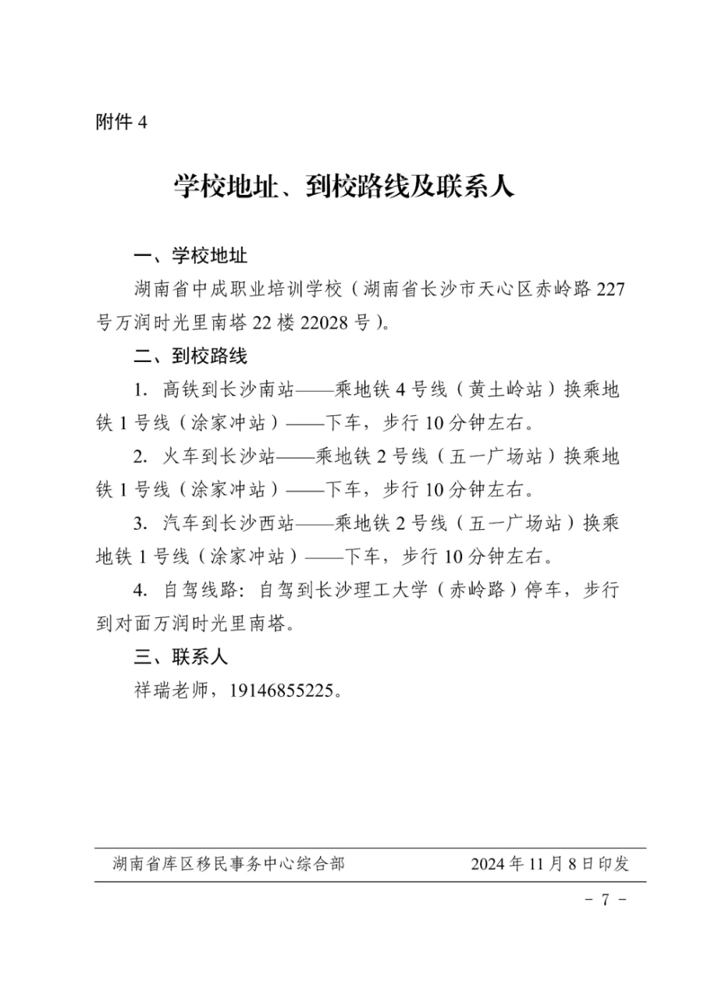 各市州水库移民机构: 根据移民培训工作年度计划,我中心委托湖南省中成职业培训学校举办2024年第二期水库移民消防设施操作员(中级监控)培训班。现就有关事项通知如下: 一、报到时间及地点 参训学员于2024年11月25日前完成培训报名,11月30日前完成报考资料提交(排队考试时间预计为 2025年1月),集中参训时间另行通知。报到地点为湖南省中成职业培训学校。 二、培训对象及名额分配 培训对象为 23 周岁~58周岁,有高中(中专)及以上学历(毕业证或户口本拍照均可),身体健康且有明确就业意愿的大中型水库移民。计划培训50 人。 三、培训内容、时间及方式 消防设施监控操作培训内容包括职业道德、消防基础知识和消防安全检查、消防控制室监控、建筑消防设施操作与维护管理初期火灾处置知识与技能、计算机基础知识等,重点培训自动消防设施监控操作等管理技能。 培训采取“线上+线下”相结合的方式,其中,线上理论培训30课时,线下理论与实操培训38课时(8天)。培训结束,将组织学员进行消防设施操作员中级监控技能考核,考核合格者可获得人力资源和社会保障部门、应急管理部门共同认可的消防设施操作员(中级)职业资格证书: 四、就业推荐 学员结业后可由学校推荐到省内外相关行业、企业就业,也可自主择业。主要就业单位为消防重点单位、消防设施维护保养机构、消防安全评估机构以及人流量大的地铁、学校、银行、医院、机场、酒店、小区、仓库、工厂等,从事消防设施监控、作、日常保养和技术管理与培训等工作。 五、培训费用 学员学习期间培训费、学杂费、住宿费、考证费、保险费:考试交通费、耗材费等由我中心统一安排,学员生活费及参训往返交通费自理(按线下实际参训出勤率可享受每人每天30元生活补助)。 凡正式确定参训的学员须向培训机构缴纳参训保证金300元。培训结束后,培训机构将全额返还。 六、有关要求 1.各市州水库移民机构要做好培训工作的宣传发动及相关保障,严格审核移民身份和健康状况,有序组织有相应就业创业意愿的移民参加培训,并于2024年11月22日前将汇总后的参训人员名单(见附件2)报我中心后期扶持部(联系人:周继征;报名咨询电话:0731-85495194;报名咨询时间:工作日上午8:00-12:00下午 14:30-17:30;电子邮箱:hnympx2008@163.com)。我中心将视报名情况对培训名额进行相应调整 2.学员报名时需提供经当地水库移民机构盖章的《学员登记表》(见附件3)、本人身份证及报考所需资料。 附件:1.市州参训名额分配表(消防设施操作员) 2.市州水库移民技能培训报名表 3.水库移民转移就业技能培训学员登记表 4.学校地址、到校路线及联系人