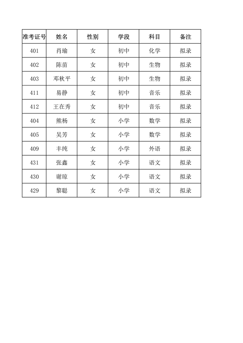 2023年湘阴县县外骨干教师选调拟录人员名单