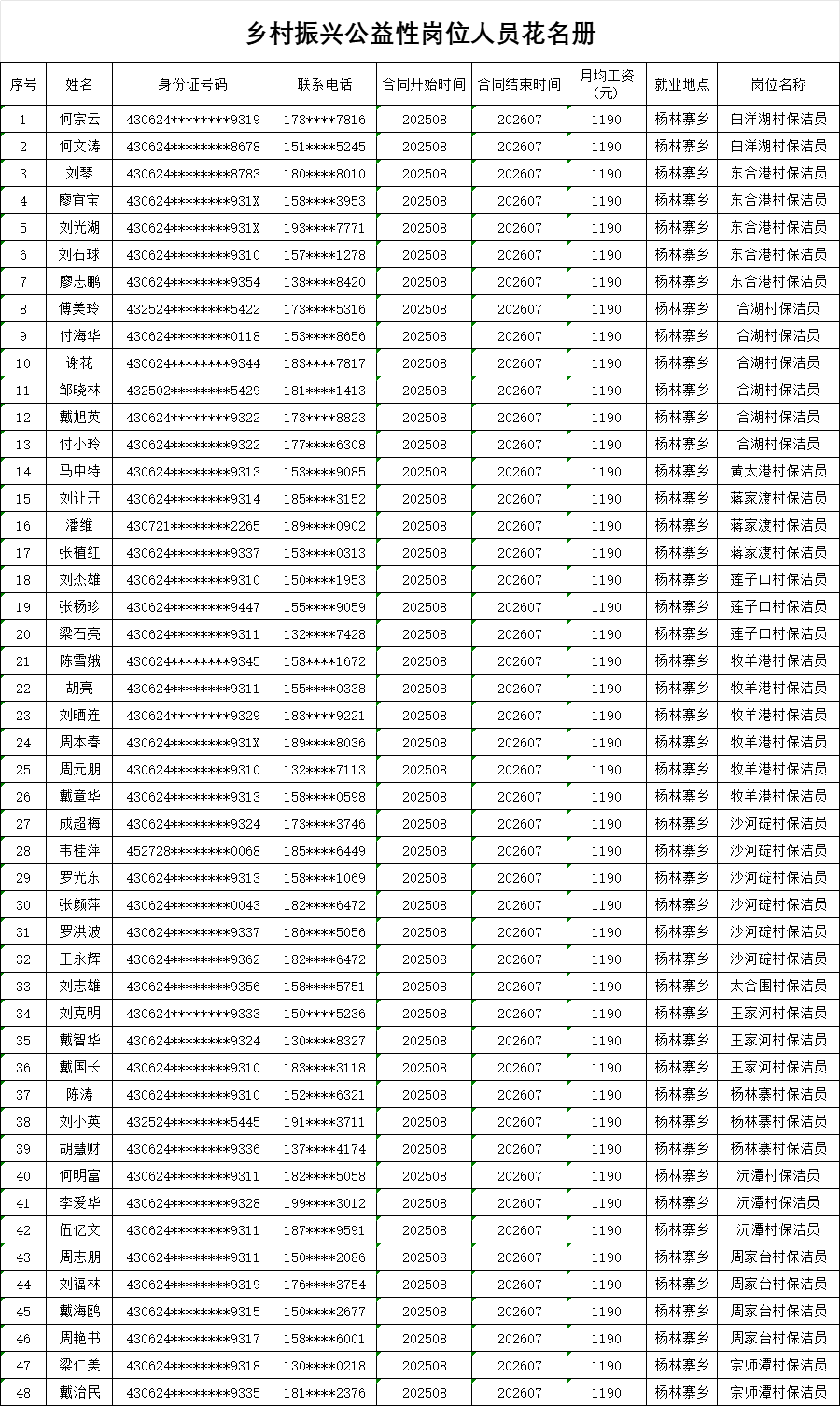 湘阴县2025年乡村振兴公益性岗位安置人员公示(7月附花名册)