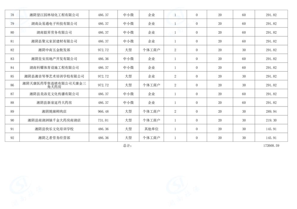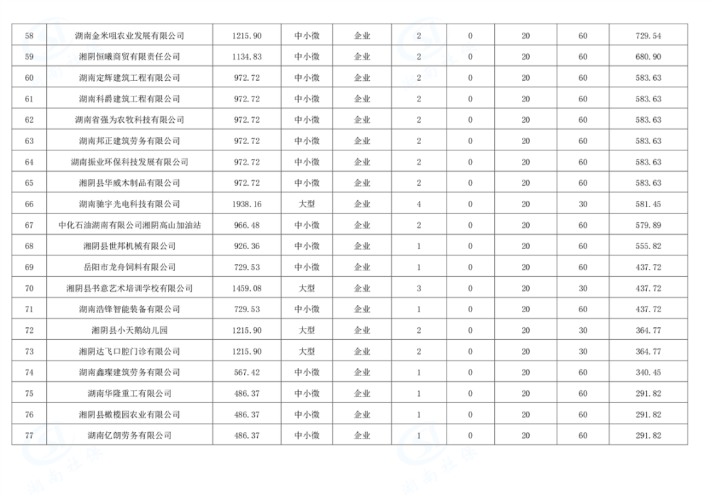 湘阴县2025年度12月稳岗补贴名单公示
