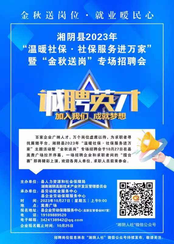 湘阴县2023年“温暖社保 · 社保服务进万家”暨“金秋送岗”专场招聘会