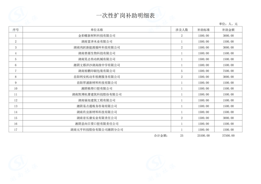 湘阴县2026年度1月扩岗补助名单公示