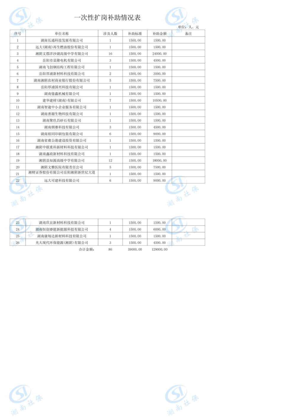 扩岗补助明细表