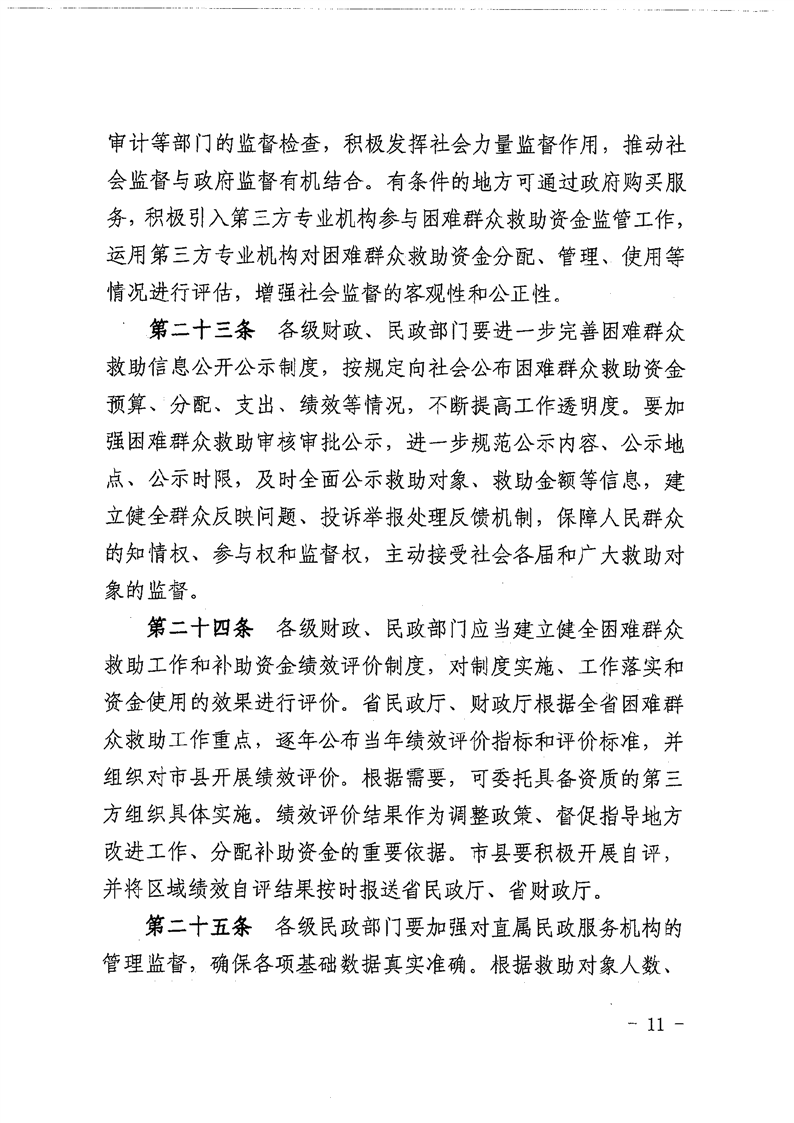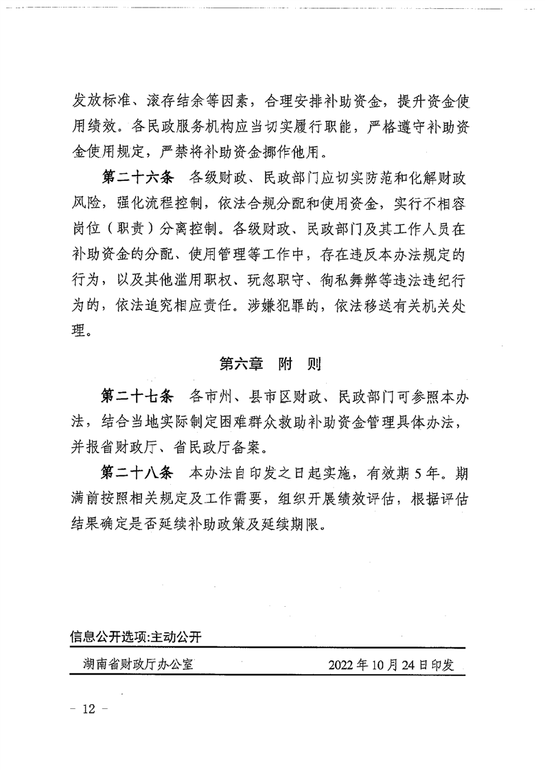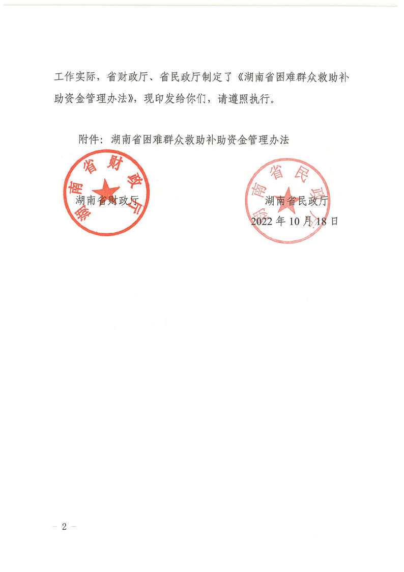 关于印发《湖南省困难群众救助补助资金管理办法》的通知 湘财社(2022)30号