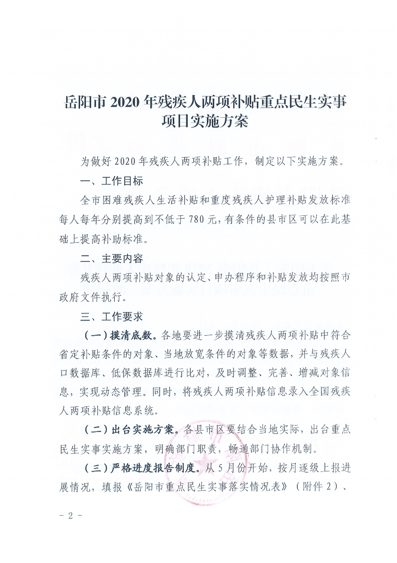 岳阳市2020年残疾人两项补贴重点民生实事项目实施方案