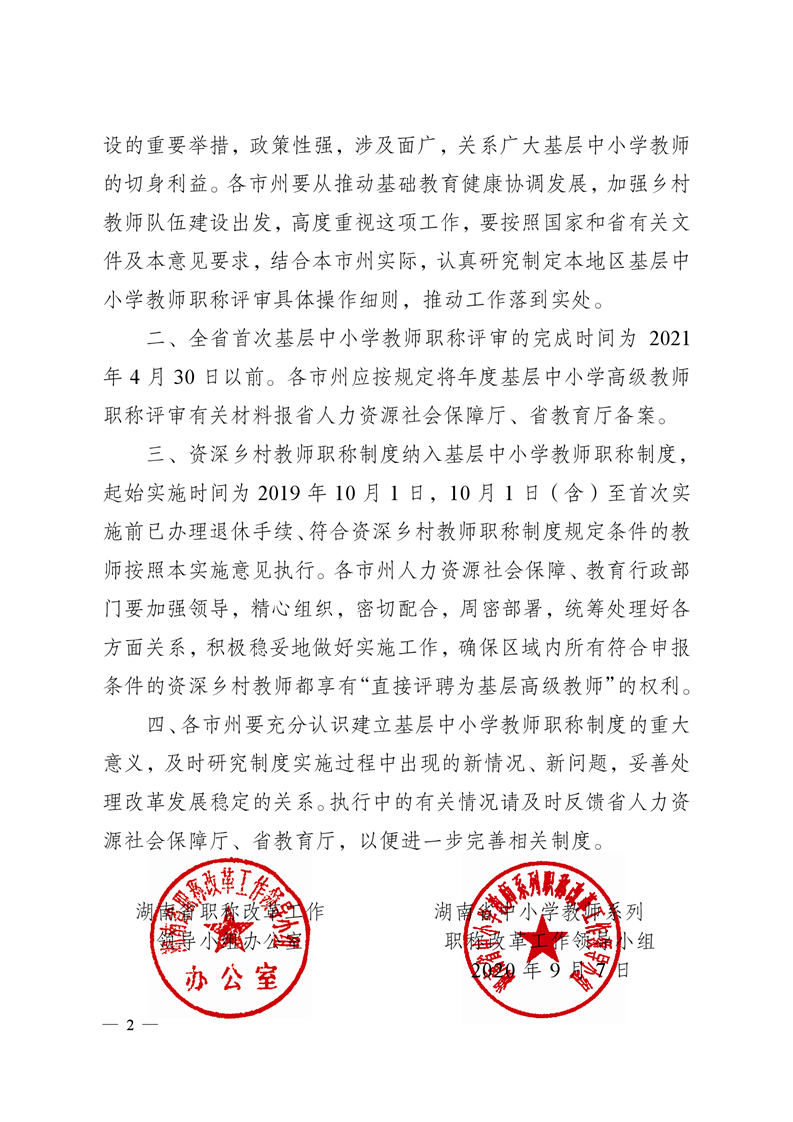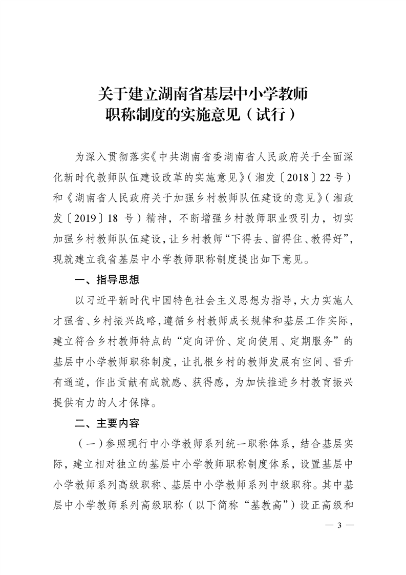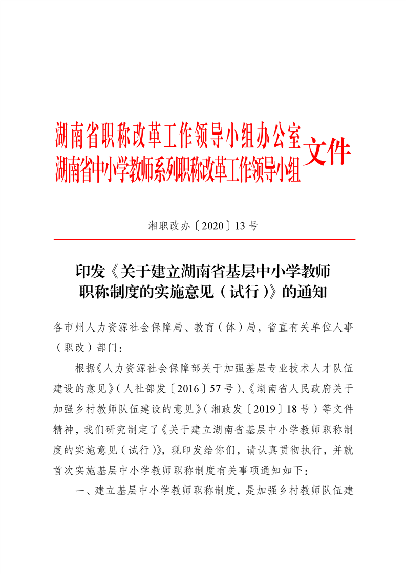 印发《关于建立湖南省基层中小学教师职称制度的实施意见(试行)》的通知
