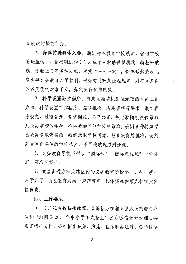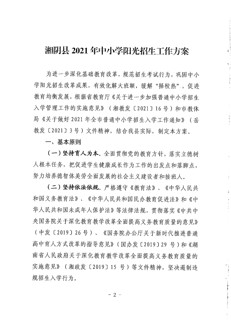 湘阴县人民政府办公室关于印发《湘阴县2021年中小学阳光招生工作方案》的通知