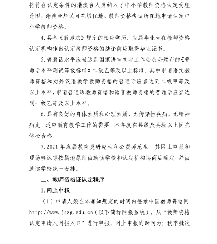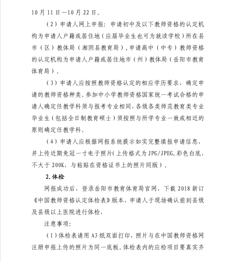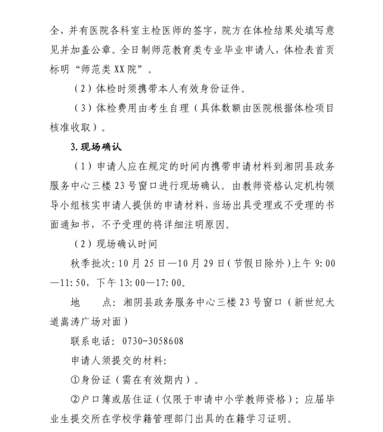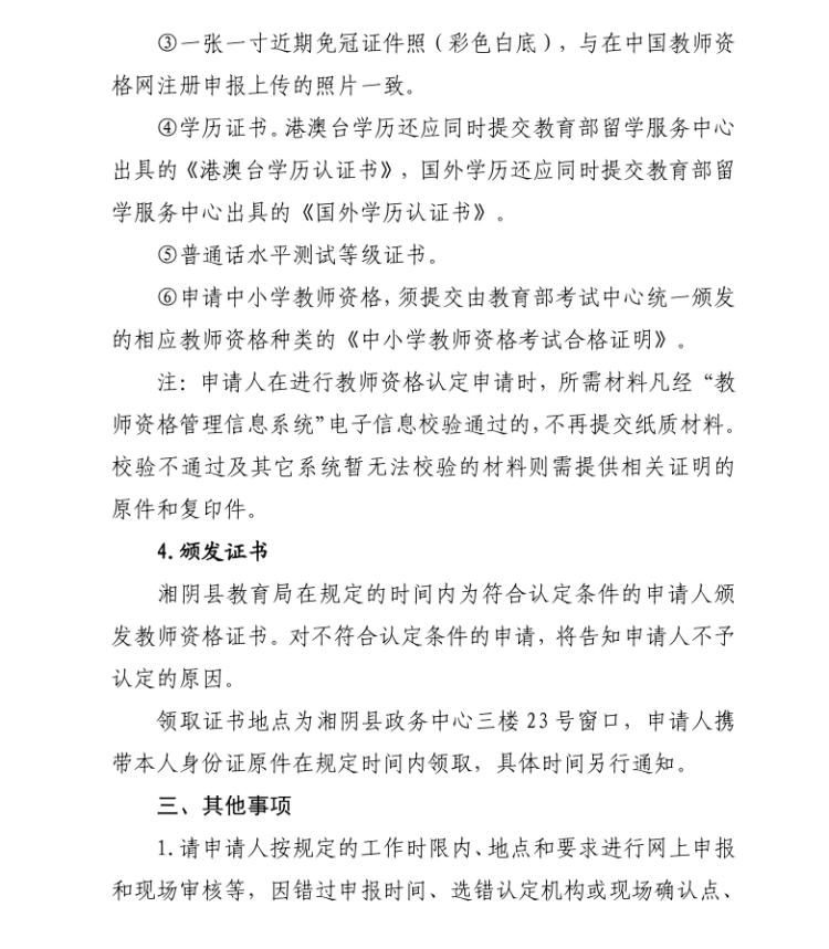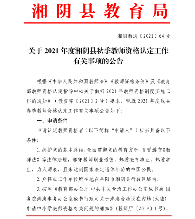 关于2021年度湘阴县秋季教师资格认定工作有关事项的公告