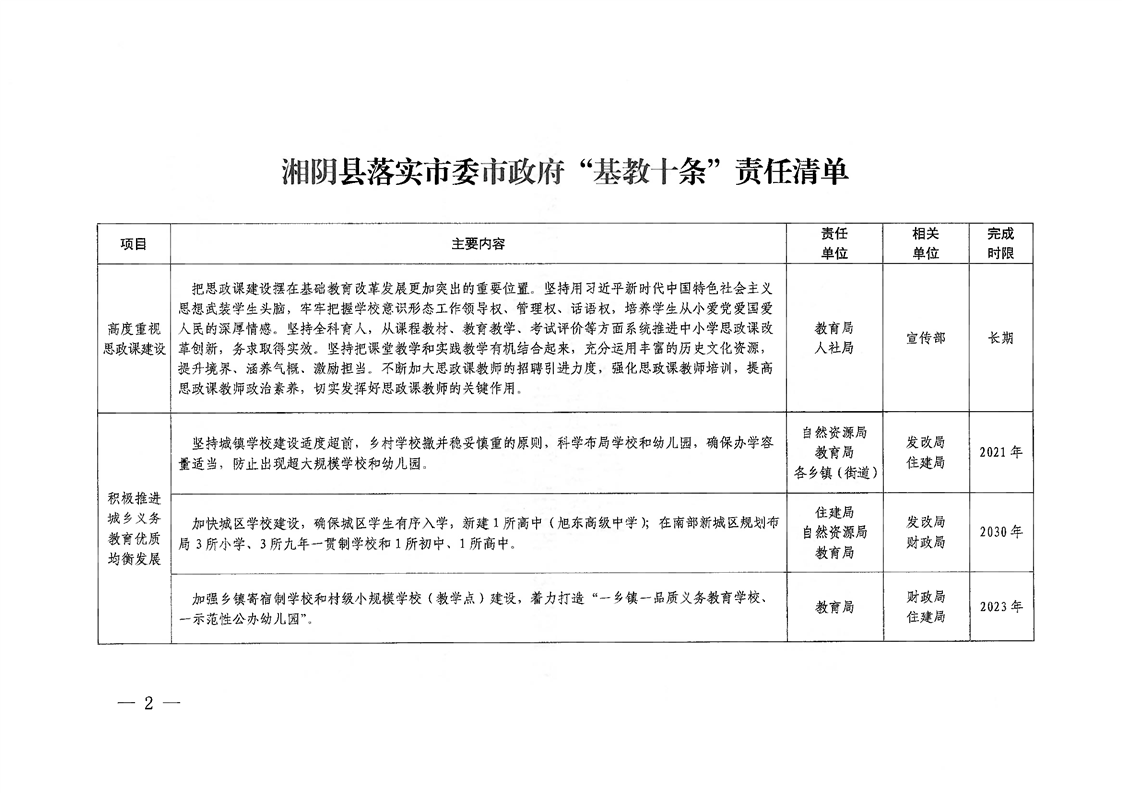 湘阴办发〔2020〕89号关于印发《湘阴县落实市委市政府“基教十条”责任清单》的通知