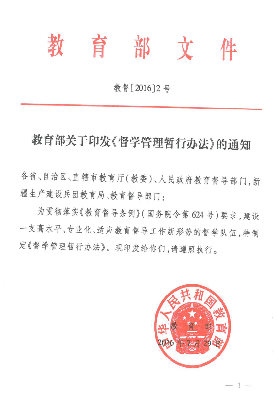 关于转发教育部《督学管理暂行办法》的通知
