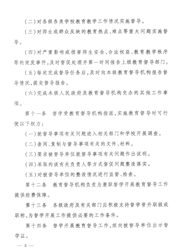 | 公开依据 | 《教育督导条例》、《县域义务教育均衡发展督导评估暂行办法》、《县域义务教育优质均衡发展督导评估办法》 | ||