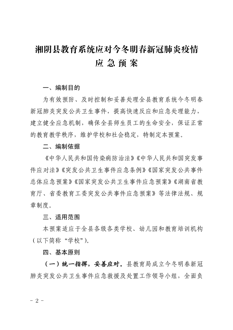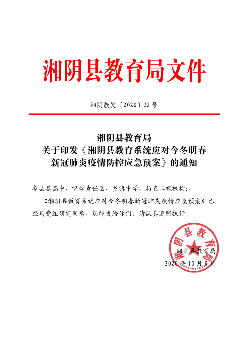 湘阴县教育局关于印发《湘阴县教育系统应对今冬明春新冠肺炎疫情防控应急预案》的通知