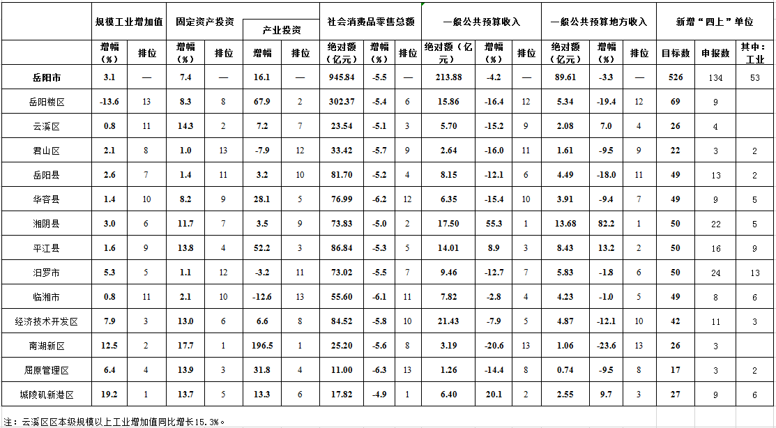 2020年1—8月岳阳市各县(市)区主要经济指标