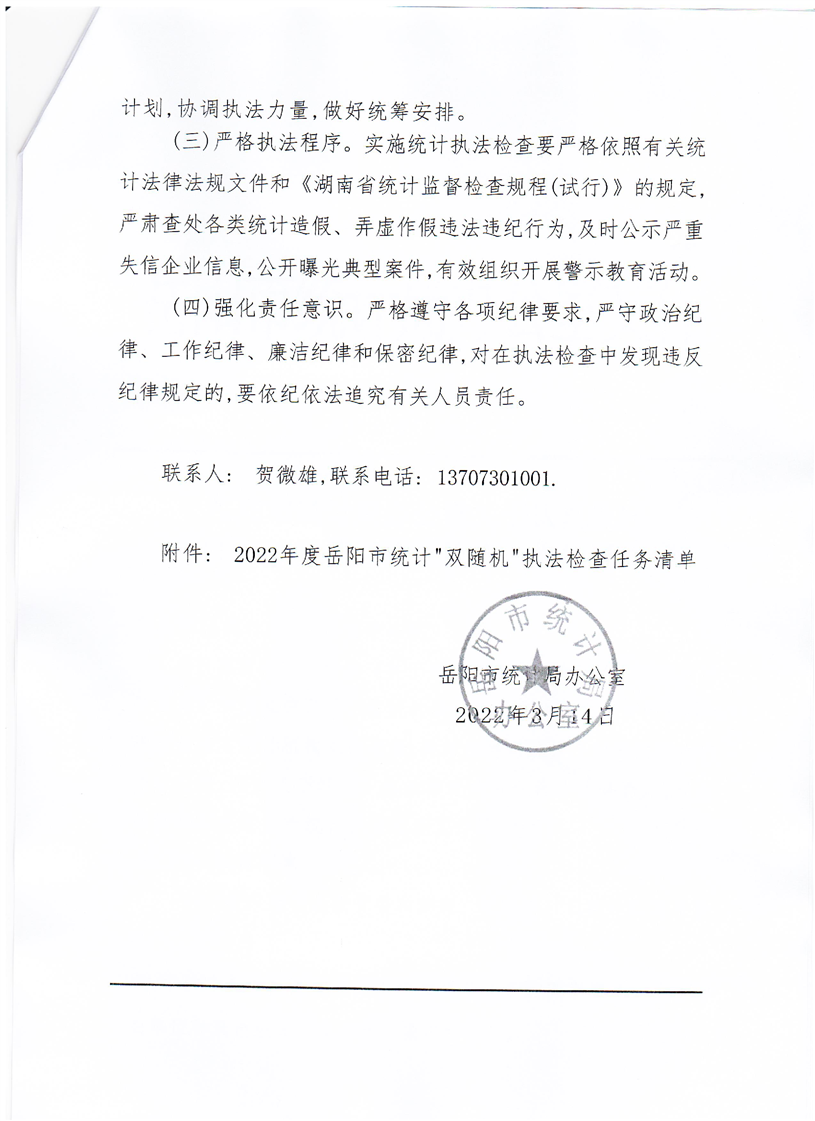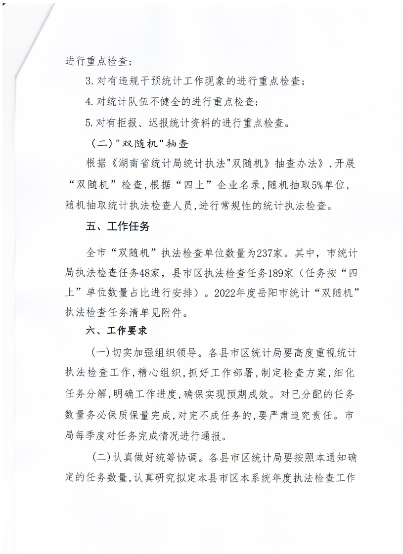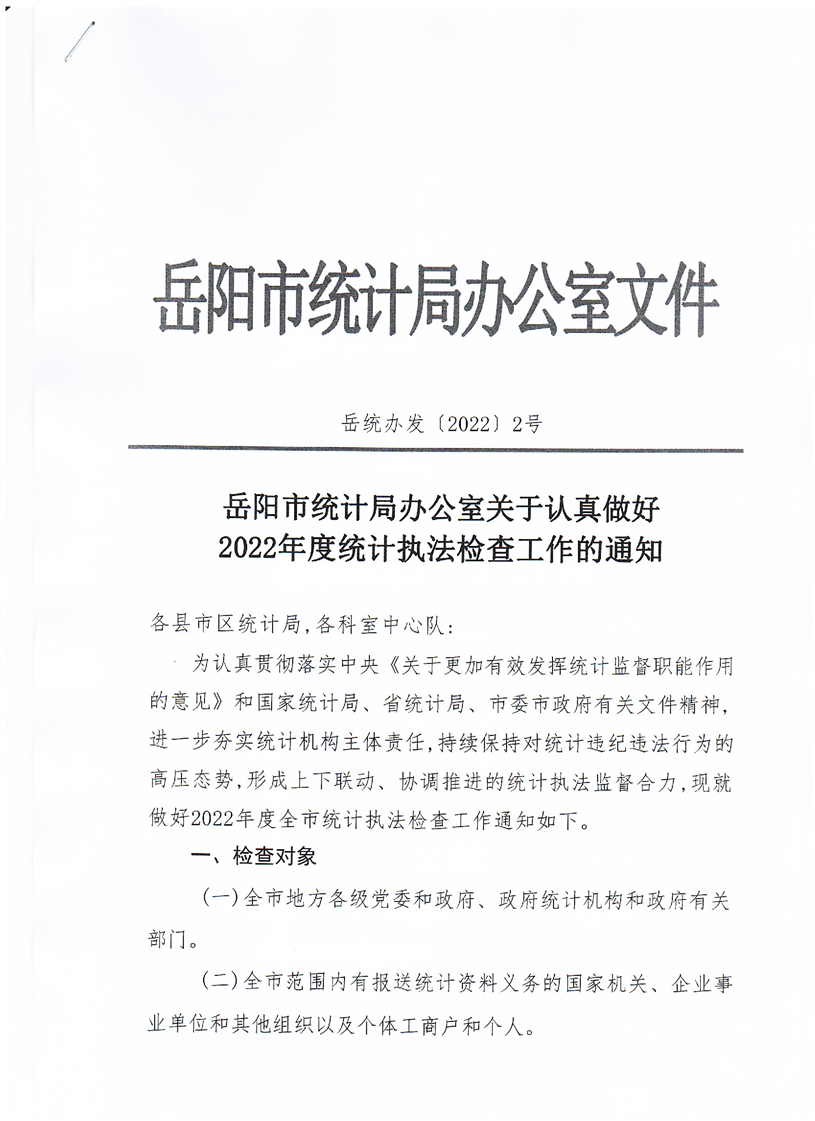 岳阳市统计局办公室关于认真做好2022年度统计执法检查工作的通知