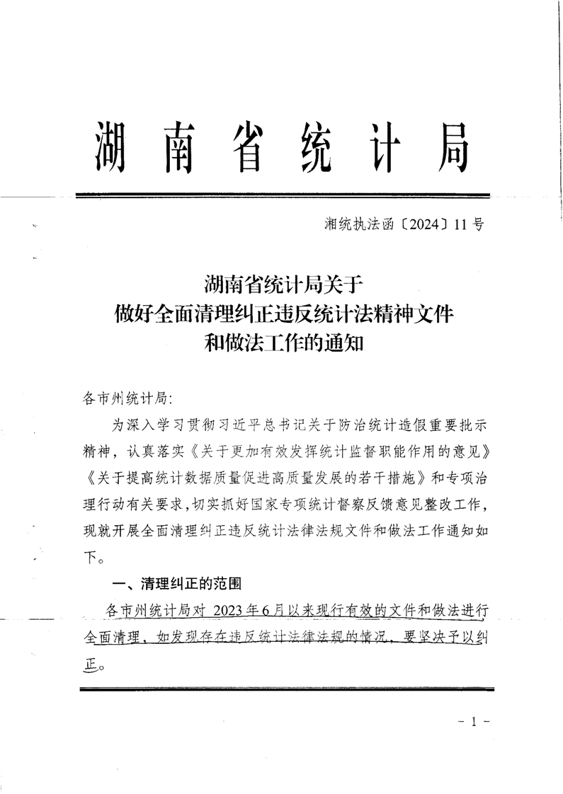 湖南省统计局关于做好全面清理纠正违反统计法精神文件和做法工作的通知