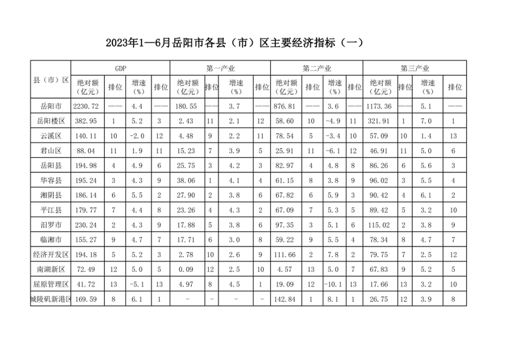 2023年1-6月主要经济指标快讯