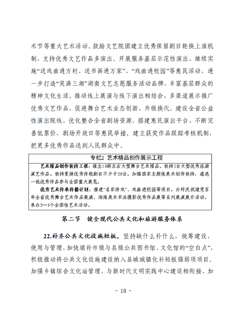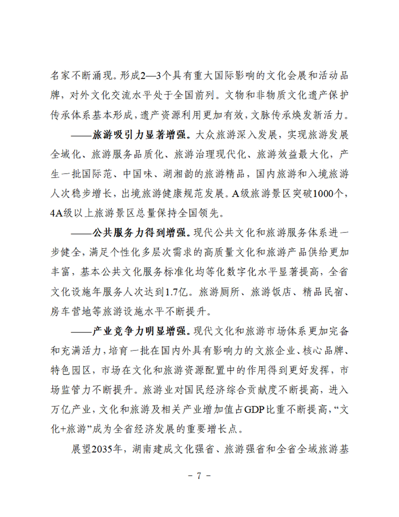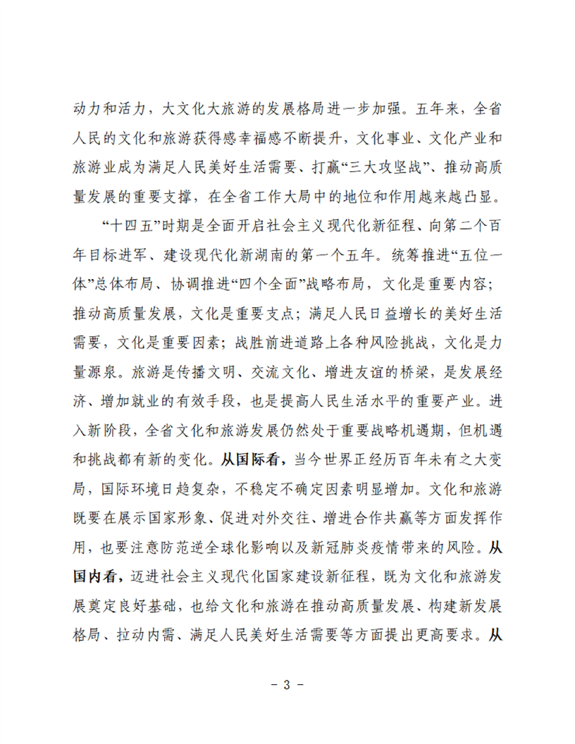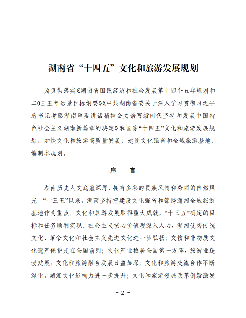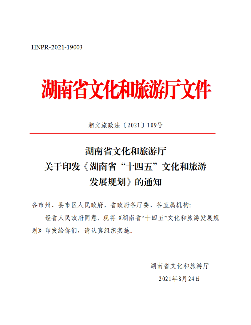 湖南省文化和旅游厅关于印发《湖南省“十四五”文化和旅游发展规划》的通知