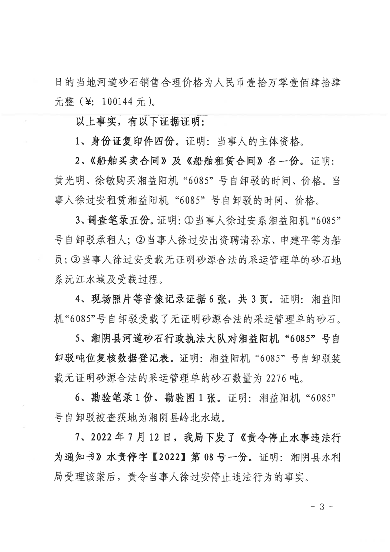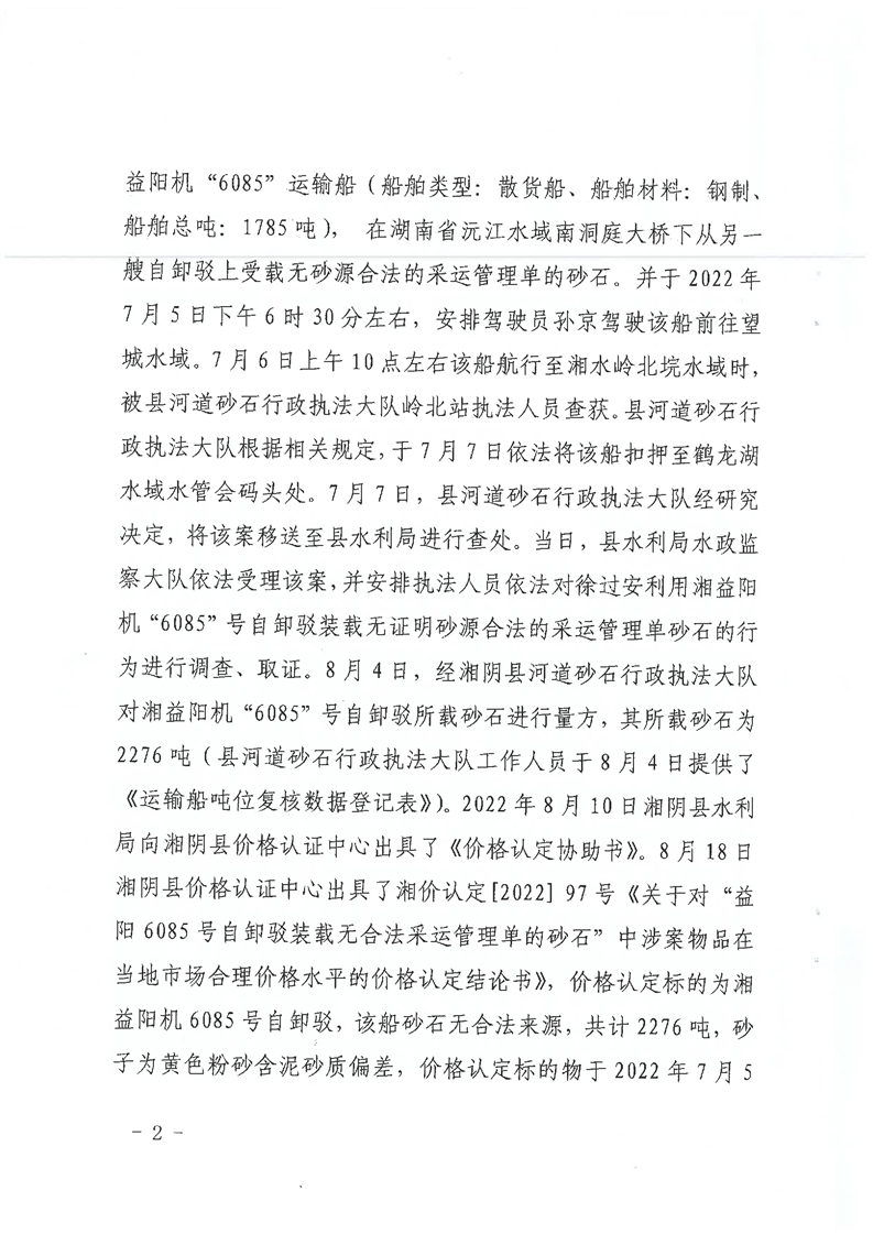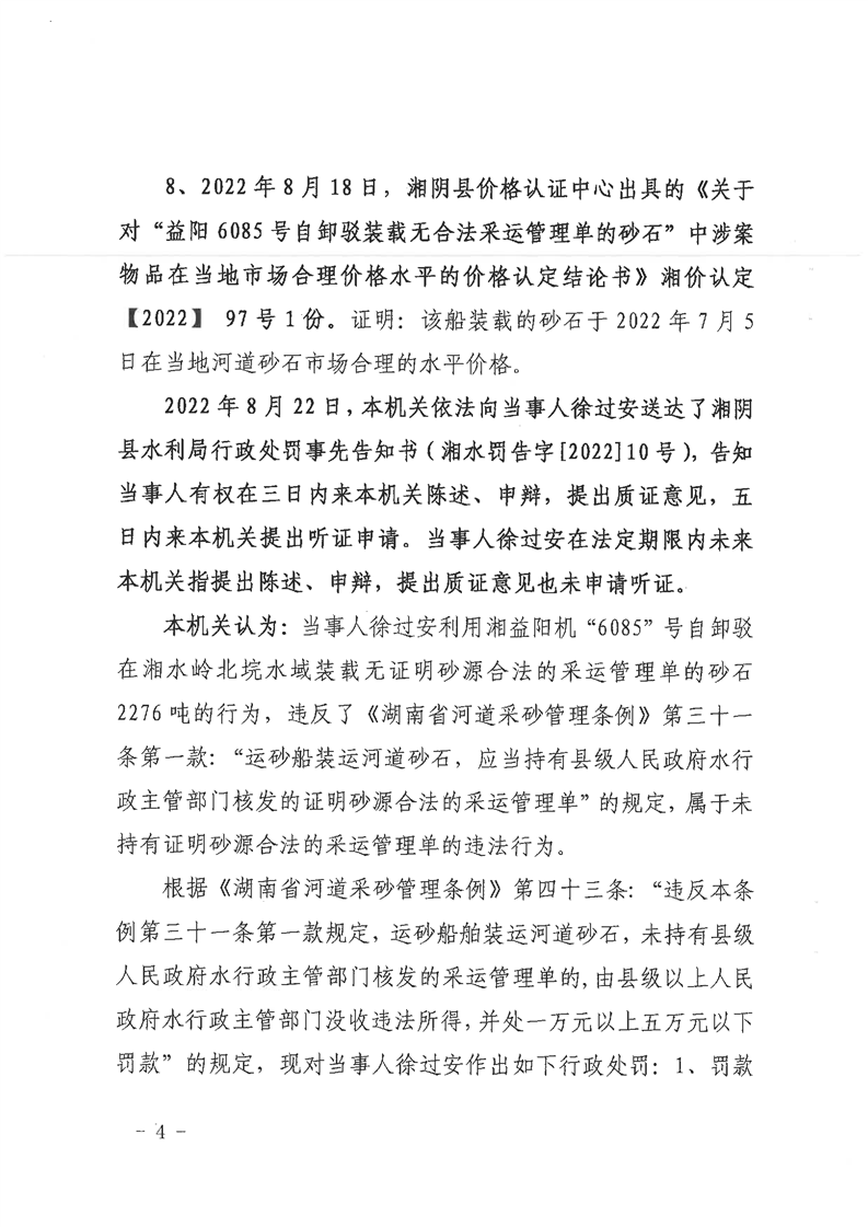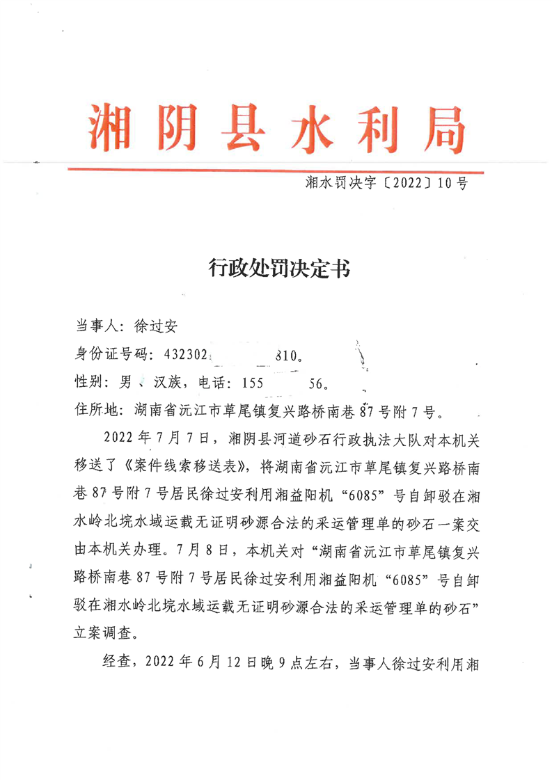 行政处罚决定书( 湘水罚决字〔2022〕10号)