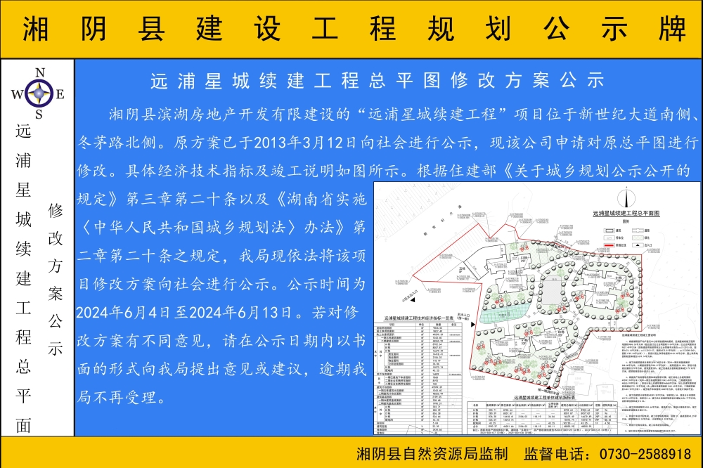 远浦星城续建工程总平图修改方案公示