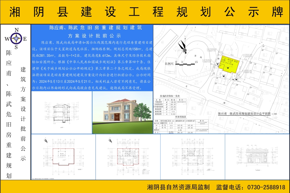 陈应甫、陈武危旧房重建规划建筑方案设计批前公示