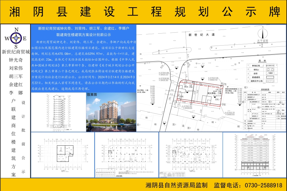 钟光奇、刘荣伟、胡三军、余建红、李娜户联建商住楼建筑方案设计批前公示
