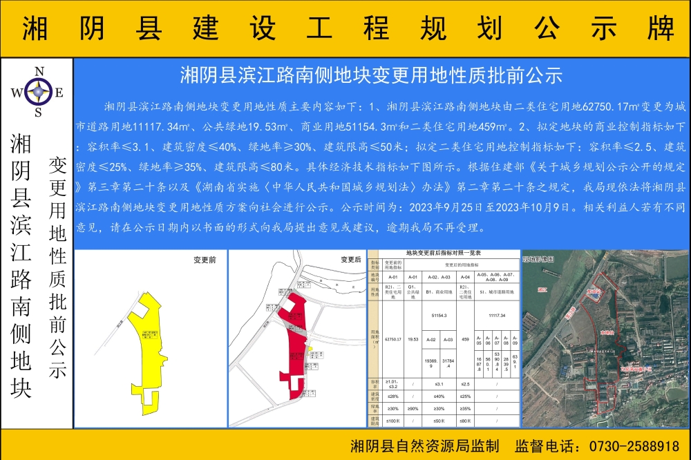 湘阴县滨江路南侧地块变更用地性质批前公示