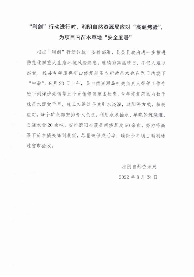 “利剑”行动进行时,湘阴自然资源局应对“高温烤验”,为项目内苗木草地“安全度暑”