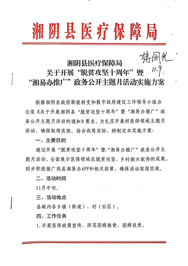 湘阴县医疗保障局关于开展“脱贫攻坚十周年”暨“湘易办推广”政务公开主题月活动实施方案