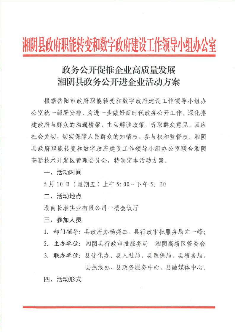 政务公开促推企业高质量发展湘阴县政务公开进企业活动方案