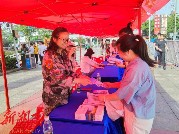 在左宗棠广场,工作人员开展“国防人防宣传进社区活动”,采用设立咨询台、摆放宣传展板、悬挂宣传横幅、发放宣传资料等形式,向广大群众宣传各类常见突发事件的危害以及应对方式。此次活动共向群众发放防灾减灾宣传资料1200余份,人防小博士800余册,接受群众咨询100余人次。