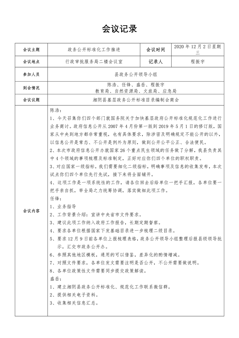 湘阴县政务公开规范化、标准化工作推进联席会