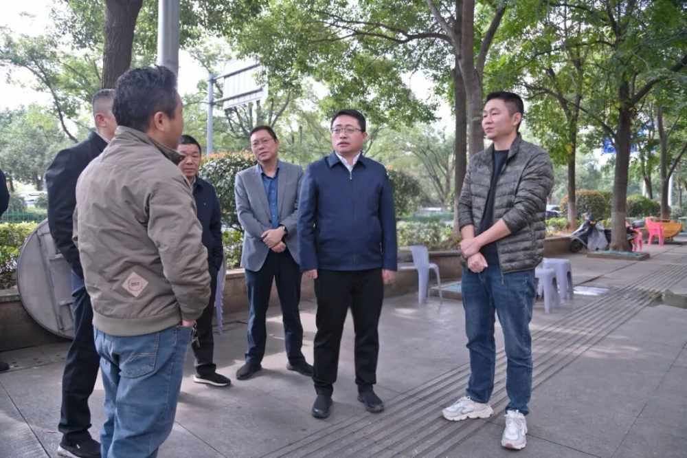 刘世奇一行先后来到金龙镇鹅形村、新兴社区,现场督导县综治中心接访事项和居民集中建房点办证问题。随后前往文星街道东湖金岸、东雅苑、尚书豪庭小区,实地查看建筑物外墙脱落、消防安全隐患整治情况,详细了解物业管理及问题楼盘处置进展。