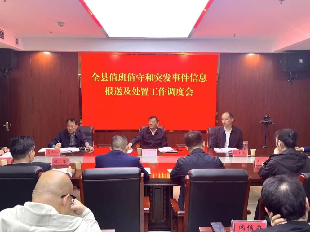 会议听取了全县值班值守和突发事件信息报送及处置工作情况汇报。与会人员就如何强化值班值守制度、提升信息报送质效、强化技术设备与联合机制等方面提出意见建议。