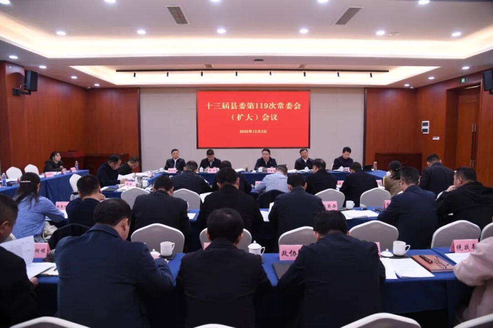 12月3日,县委书记刘世奇主持召开十三届县委第119次常委会(扩大)会议。全体在家的县委常委、县人大常委会主任、县政协主席及相关县领导参加。
