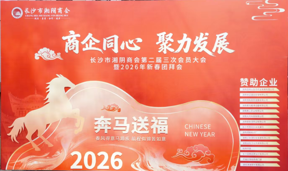 张永久代表县委、县政府,向各位老领导和乡友对家乡的长期关心与支持表示衷心感谢。他说,过去一年,商会工作成效显著,乡友事业蓬勃发展,湘阴发展迈上新台阶。在县委“一正四新”工作思路指引下,全县GDP突破500亿元,成功进入全省20个经济大县行列。全县重点实施的“五个一”工程取得积极进展:带好一支队伍,引导各级干部转作风、提状态、争先进;建设一个港口,虞公港集疏运体系持续完善,工程机械再制造产业园一期工程开工建设;引进一批项目,中交建等行业龙头签约落户,昊志导轨等乡友项目壮大园区产业,28家“乡间工厂”助力乡村振兴,“湘阴好物”品牌影响扩大;守护一方平安,着力化解医疗、教育、农村饮水等民生难题;描绘一张蓝图,编制“十五五”规划,明确打造“长岳协同发展桥头堡、湖南对外开放新门户、大湖生态经济样板区”,构建“一核、两极、三带”空间布局,推动比较优势转化为发展实效。新的一年,湘阴将聚焦加快虞公港开发、融入长株潭发展、做强特色农业、弘扬左宗棠文化等重点方向,奋力“走在前、闯新路”。希望广大乡友企业家继续发挥宣传、招商、联络作用,引导更多政策、项目和资源汇聚湘阴,携手共建美好家园。