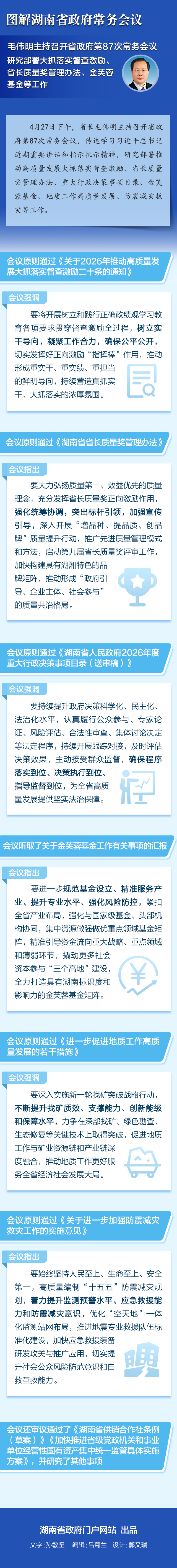 【图解】4月27日省政府常务会议:部署大抓落实督查激励、省长质量奖管理办法、金芙蓉基金等工作