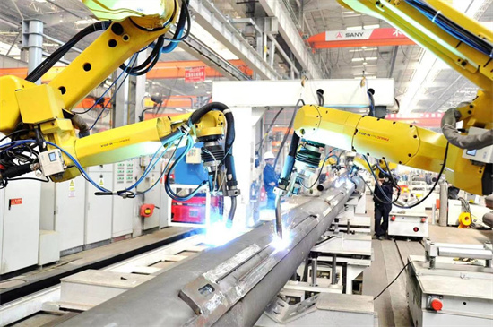 三一集团18号工厂内的智能机器正在工作。 三一集团供图