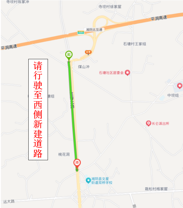 1.走新建S506屈原至湘阴公路一期工程K16+160至K17+473段右幅(暨原道路西侧的新建道路)。