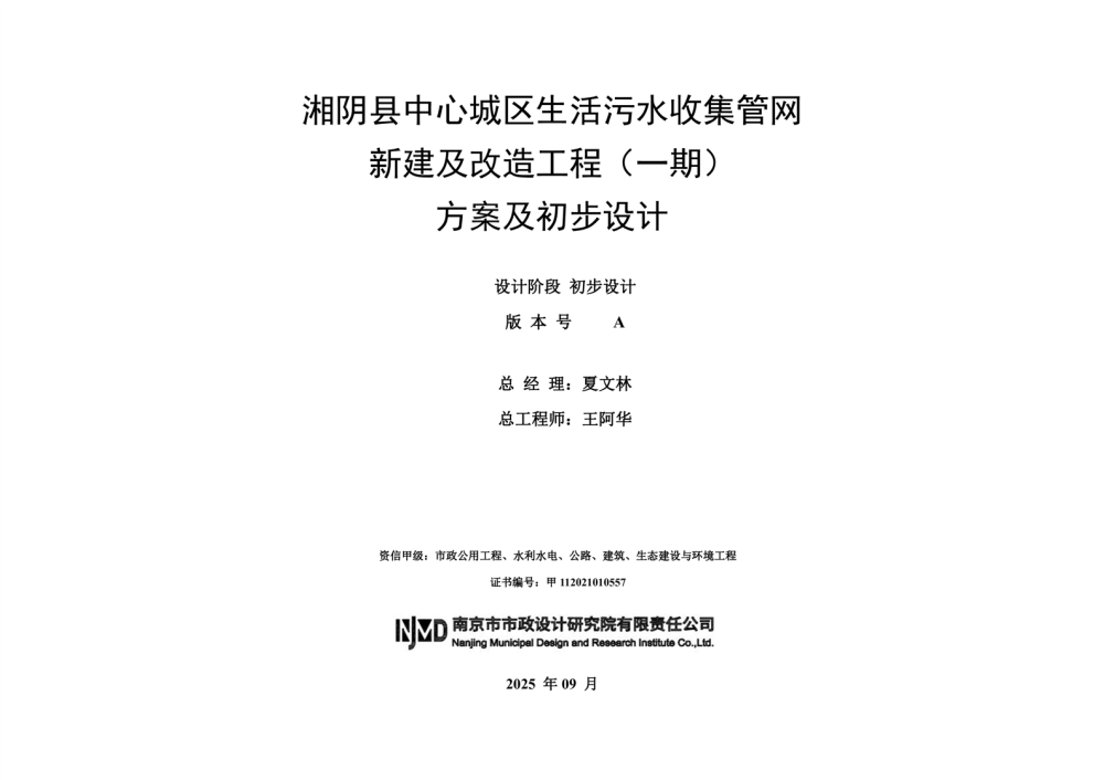 湘阴县中心城区生活污水收集管网新建及改造工程(一期)初步设计