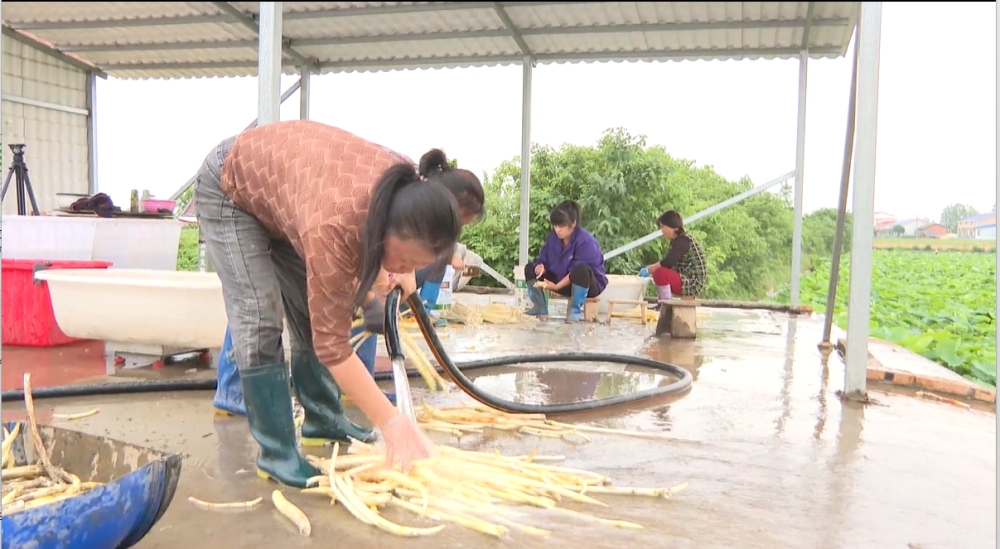 自2022年开始,茶湖潭社区依托当地丰富的水域资源,流转100多亩低洼田发展藕尖产业。经过几年的探索,如今,通过“订单农业”模式,藕尖已成为带动村集体增收的“黄金产业”。