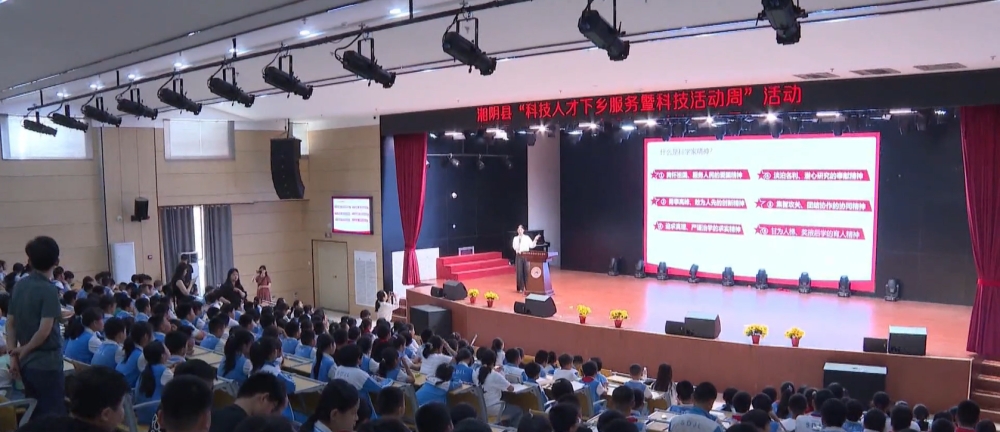 上午9时许,湖南师范大学附属金龙学校礼堂里,县人才服务中心“星火课堂”讲师团为四至六年级学生带来了一场精彩的科学家精神宣讲,通过讲述钱学森、袁隆平等科学家的感人事迹,激励青少年树立远大理想,立志报效祖国。教学楼内,县科协带来的“空气火箭”手工课火热开课,六(一)班的孩子们聚精会神地听着志愿者们讲解相关知识,并亲手制作了属于自己的“空气火箭”。