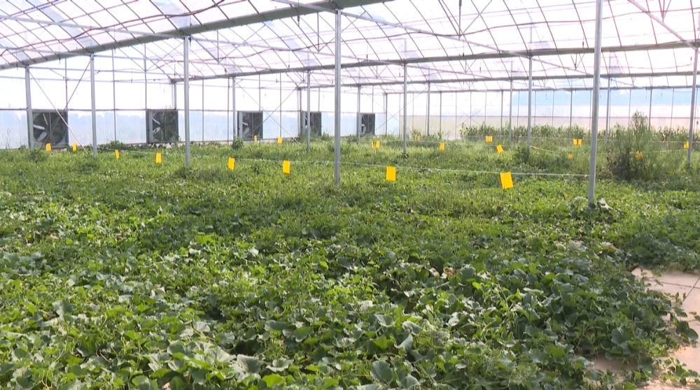 面对持续高温,合作社精心设计“降温行动”。只见多台喷灌设备正在分区作业,精准的水雾为蔬菜撑起“遮阳伞”。配合智能风机和水帘系统,大棚温度始终保持在适宜区间。