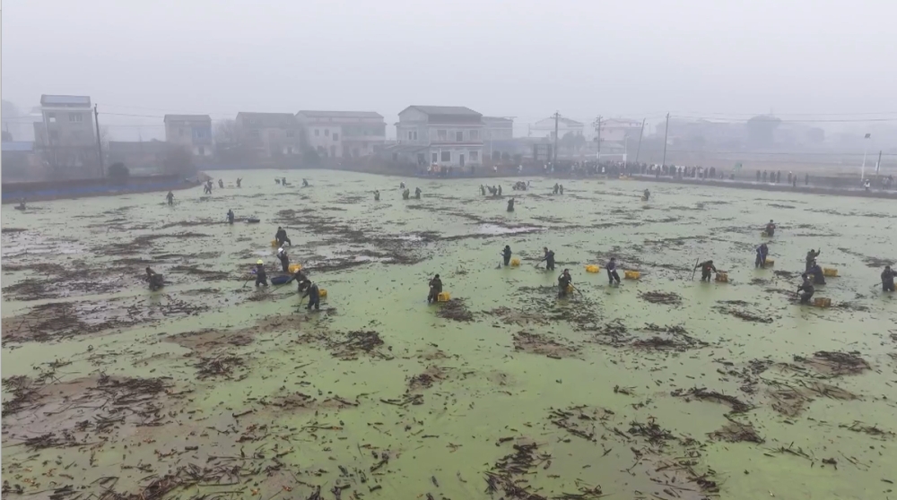 1月18日,湘阴县鹤龙湖镇古潭村千亩藕塘内人声鼎沸、暖意融融。500余名来自全国各地的游客、网红达人与当地村民欢聚一堂,一场别开生面的生态甲鱼捕捞比赛在此热闹上演,以趣味劳动为农户纾困解难,为乡村振兴注入鲜活动能。