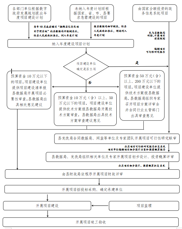 确定为立项的项目,按立项要求开展可行性研究、初步设计、概算设计,具体审批材料及流程由县发改局负责指导,其中初步设计部分由县数据局会同县发改局等单位及专家团队开展联审并出具审查意见。