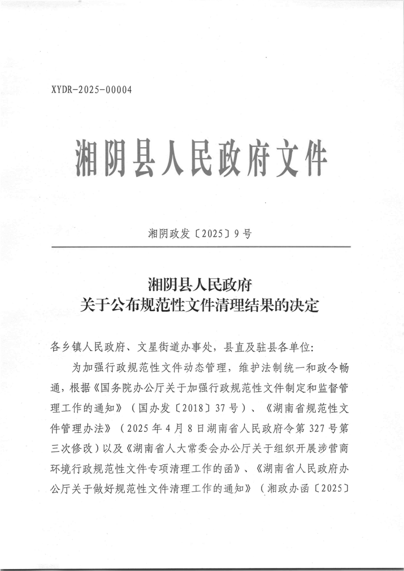 解读:《湘阴县人民政府关于公布规范性文件清理结果的决定》