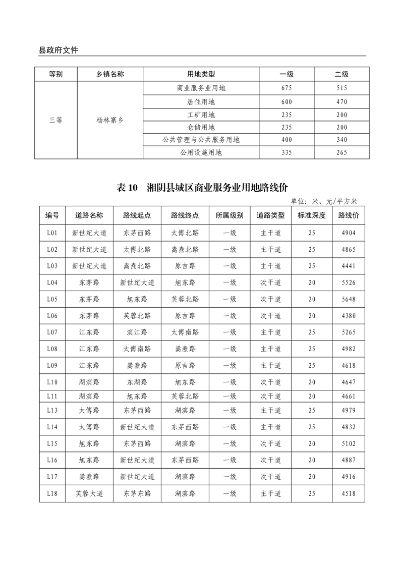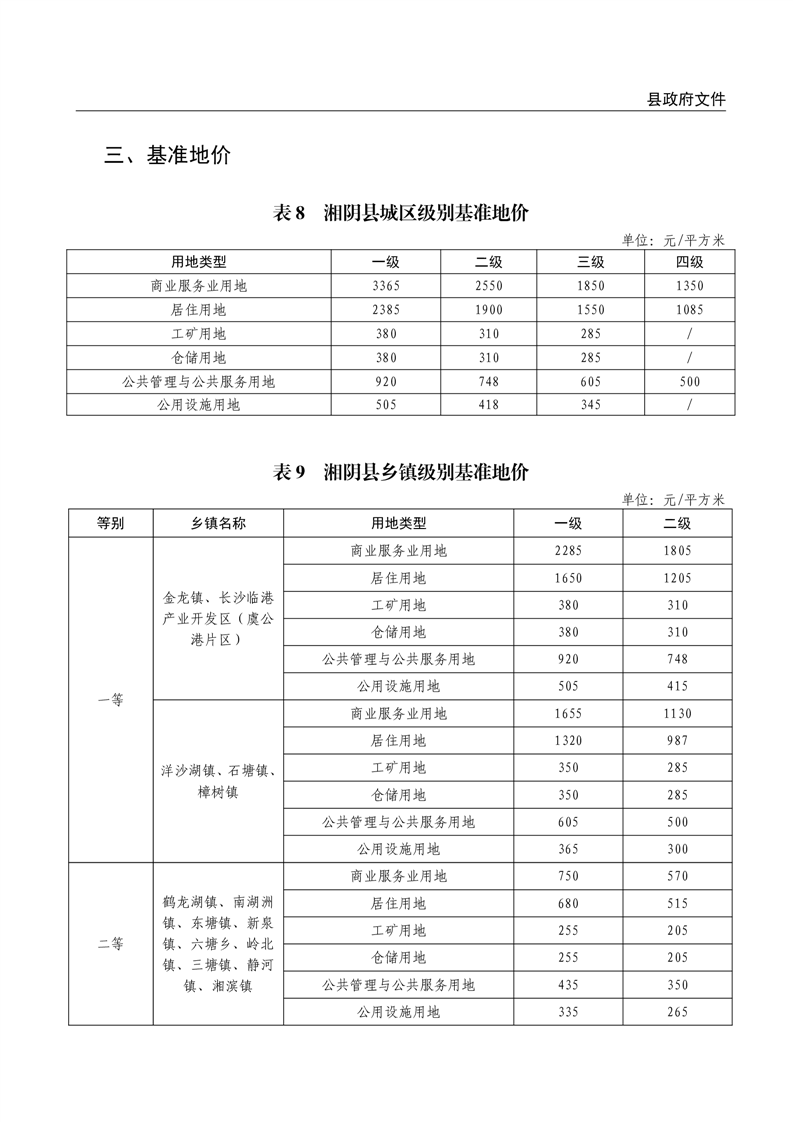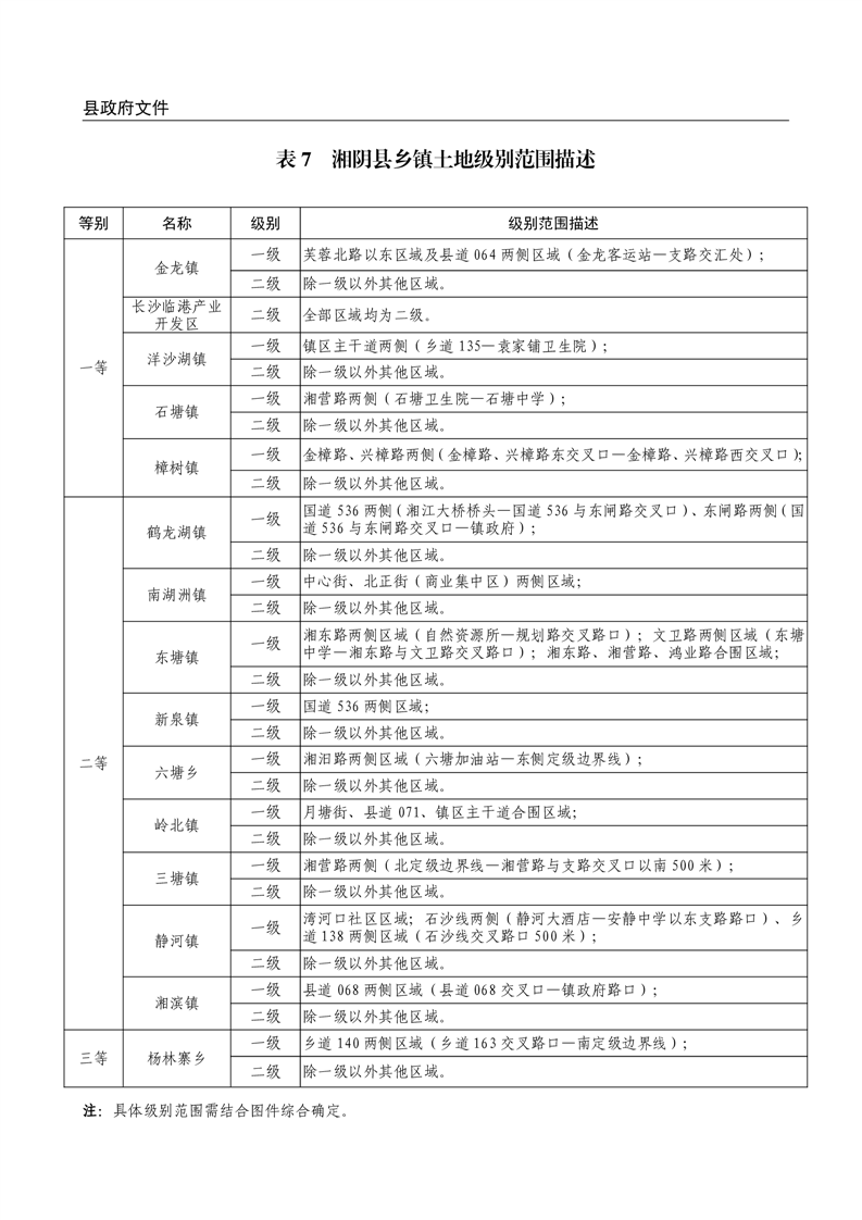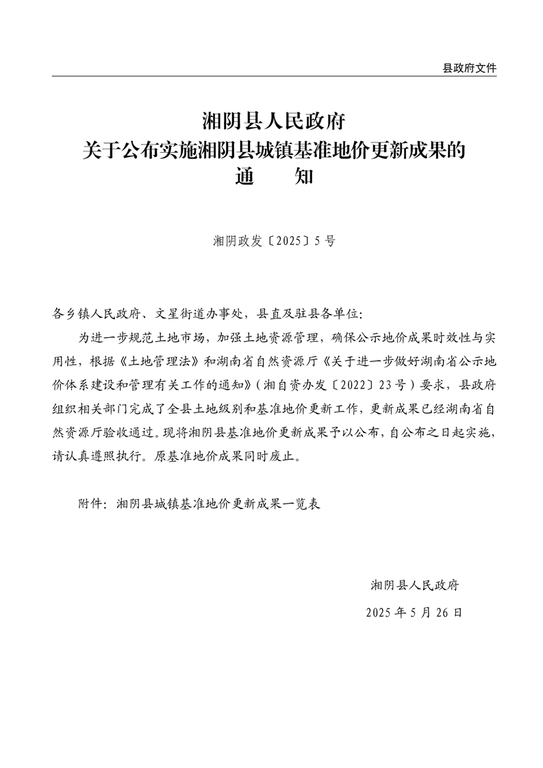 关于公布实施湘阴县城镇基准地价更新成果的公告