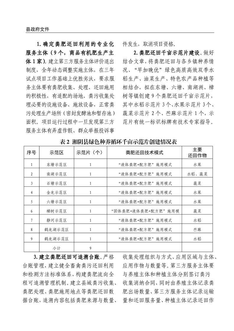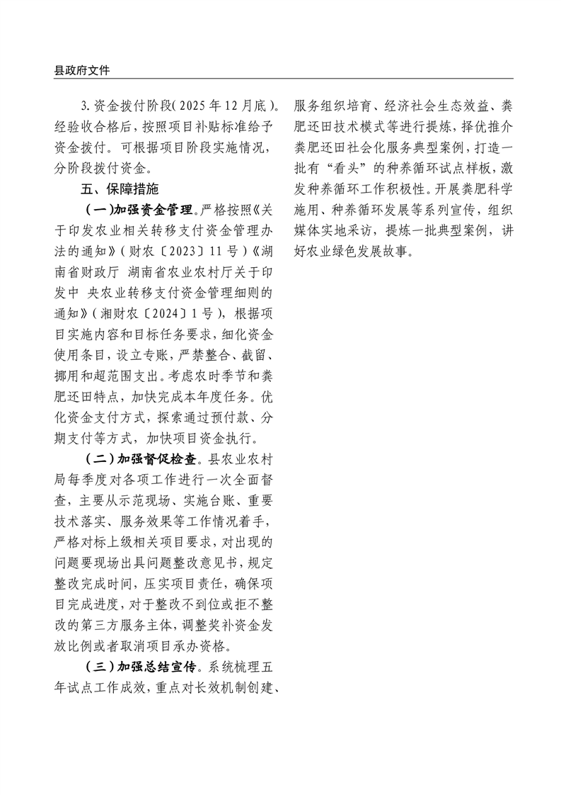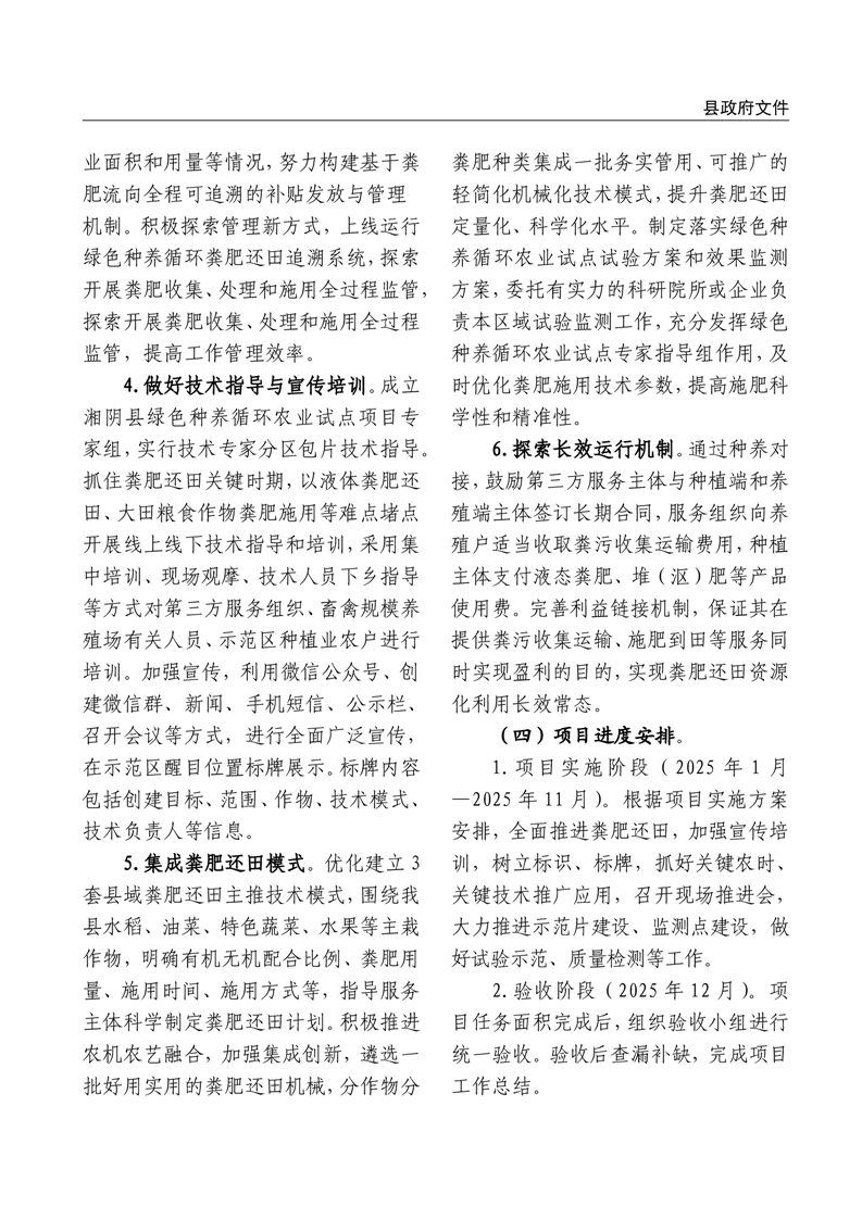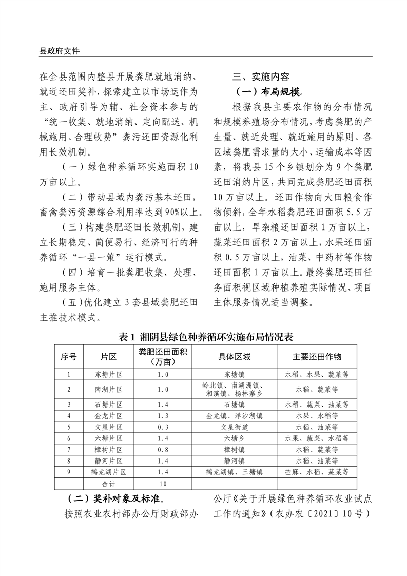 关于印发《2025年湘阴县绿色种养循环农业试点项目实施方案》的通知